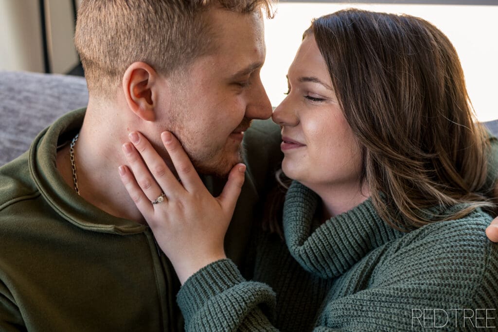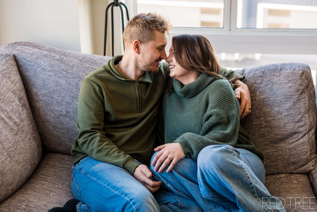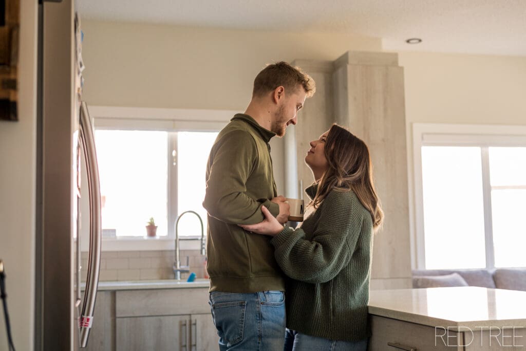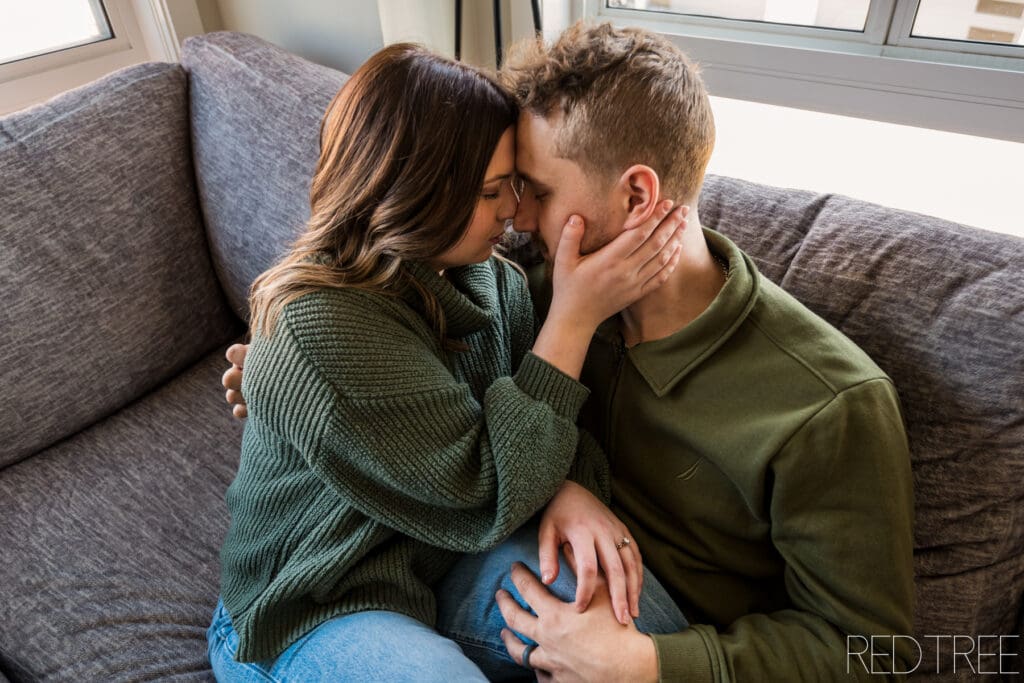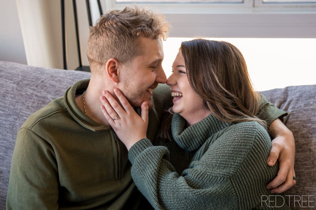 There’s something really special about photographing couples in spaces that are meaningful to them. An at-home engagement session allows for a slower, more comfortable atmosphere where couples can simply be themselves. Whether it’s sitting together on the couch, sharing a quiet moment in the kitchen, or laughing together in their own space, those moments always feel incredibly genuine.