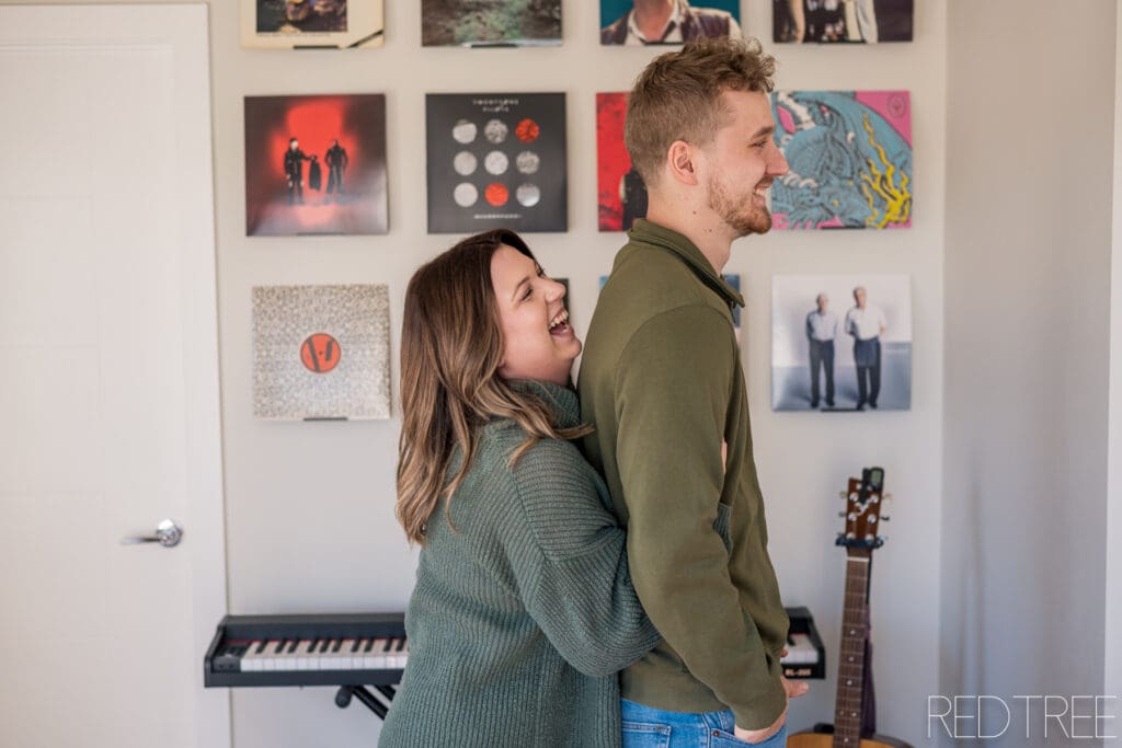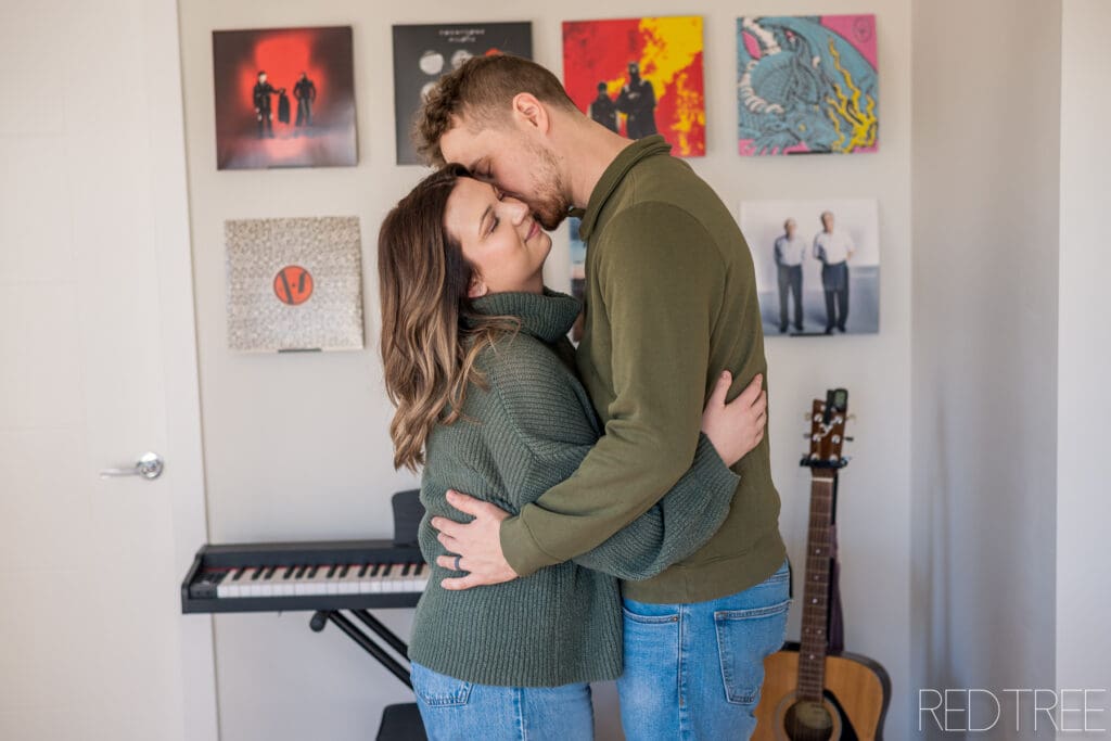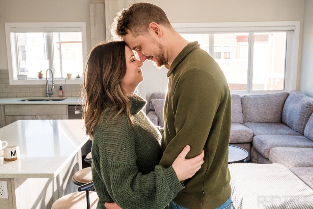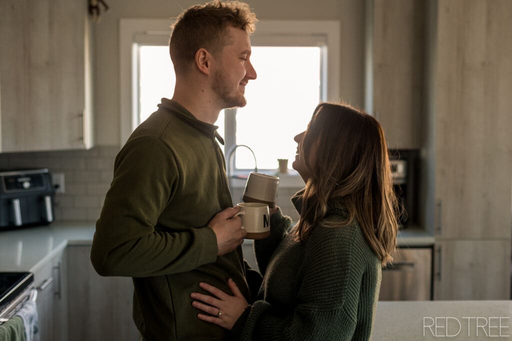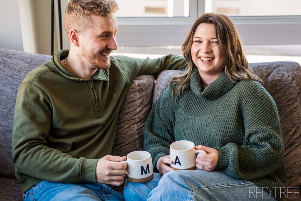 There’s something really special about photographing couples in spaces that are meaningful to them. An at-home engagement session allows for a slower, more comfortable atmosphere where couples can simply be themselves. Whether it’s sitting together on the couch, sharing a quiet moment in the kitchen, or laughing together in their own space, those moments always feel incredibly genuine.