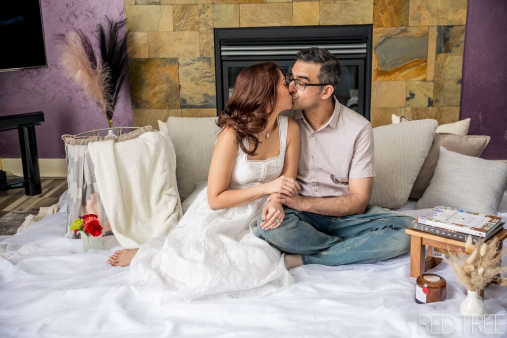 Kristina recently photographed Jel and Gaurav’s engagement session right in their home, and it was the perfect reminder that comfort plays a huge role in creating meaningful, authentic images. From the moment they started, everything felt relaxed and natural. No pressure, no distractions—just the two of them being themselves in a space they love.