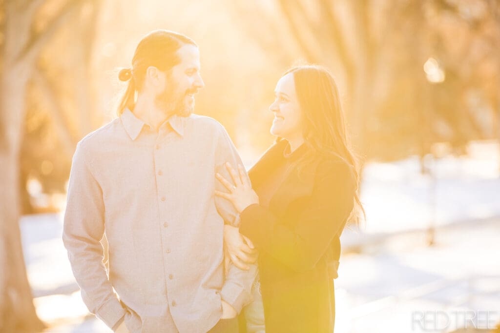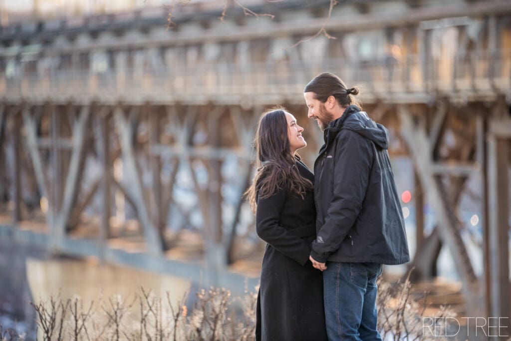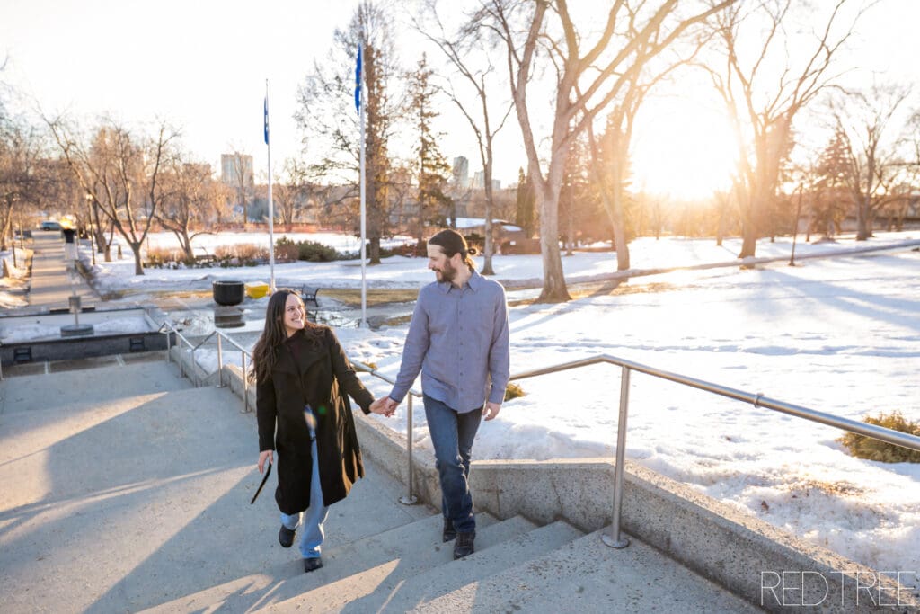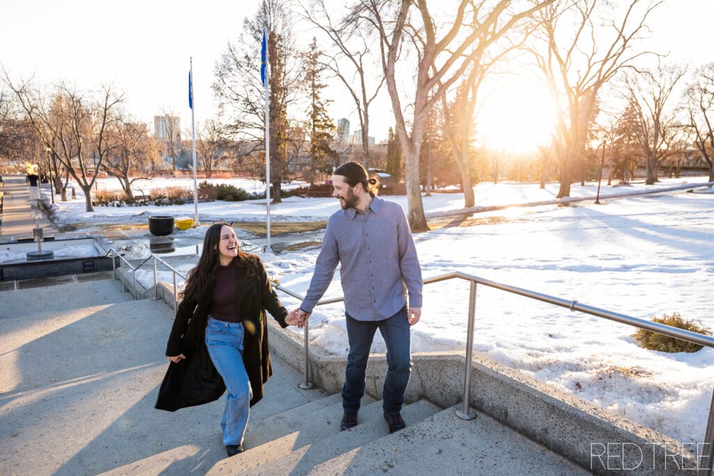 The Alberta Legislature is one of our favourite downtown Edmonton engagement locations for a reason. It offers timeless architecture, open space for movement, and beautiful light at sunset — even in winter. You get variety without having to travel far, which is perfect when temperatures drop.