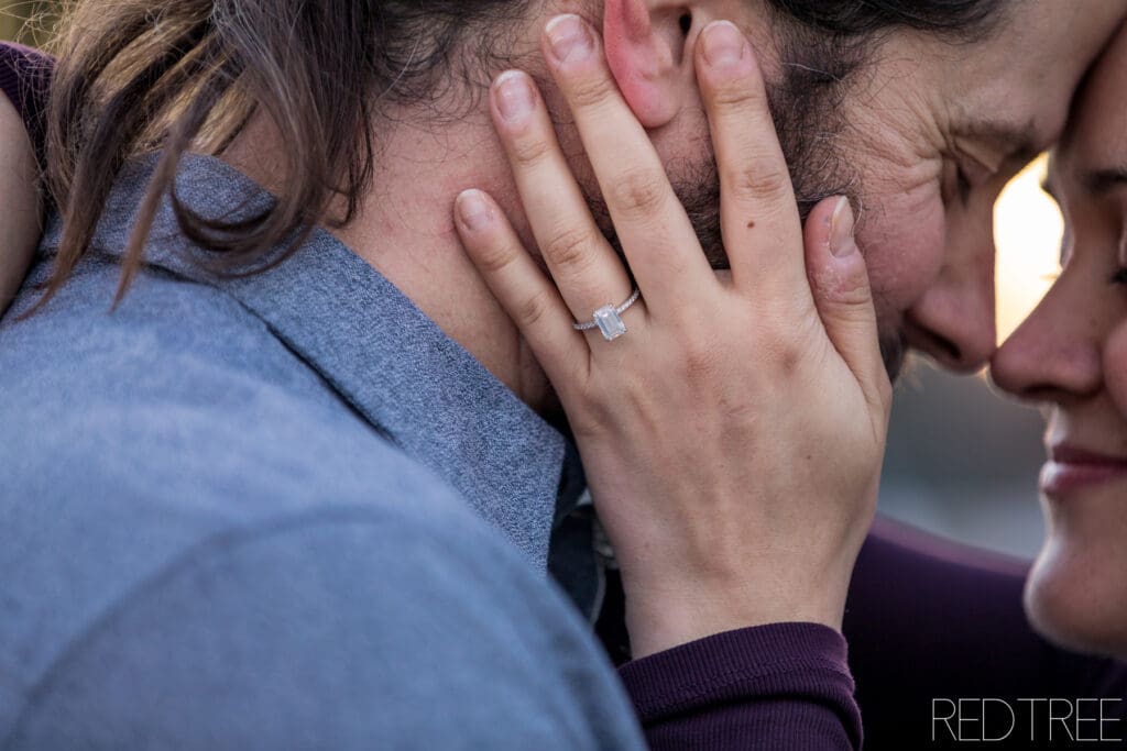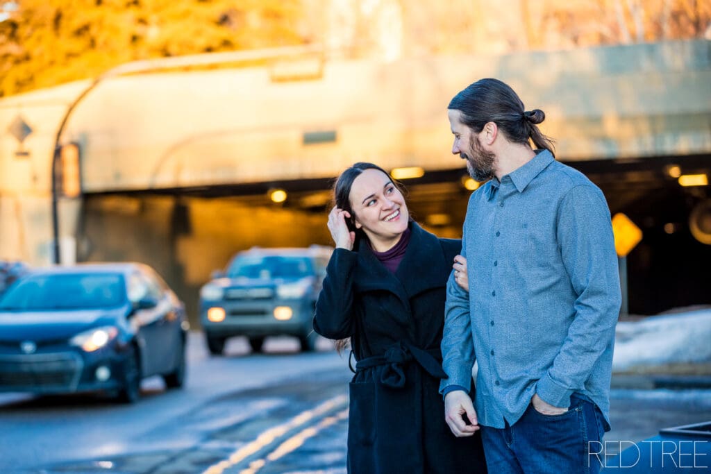 As the sun started to dip, the golden winter light reflected off the stone and created the most romantic glow. Amanda and Tim leaned into the vibe completely — walking hand-in-hand, laughing between shots, pulling each other close to stay warm. The movement made everything feel alive and effortless.