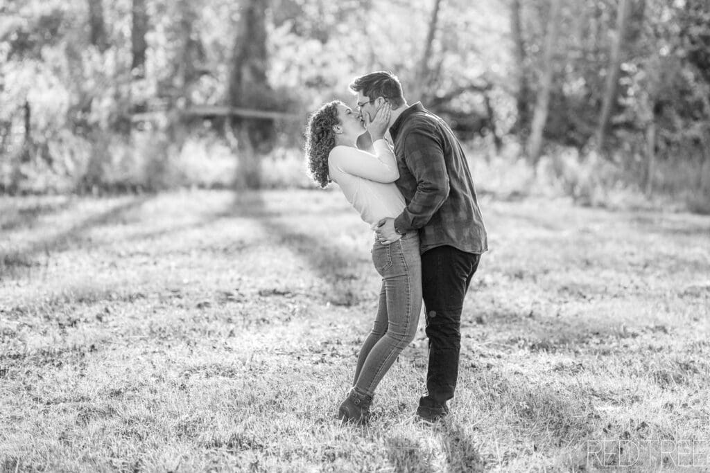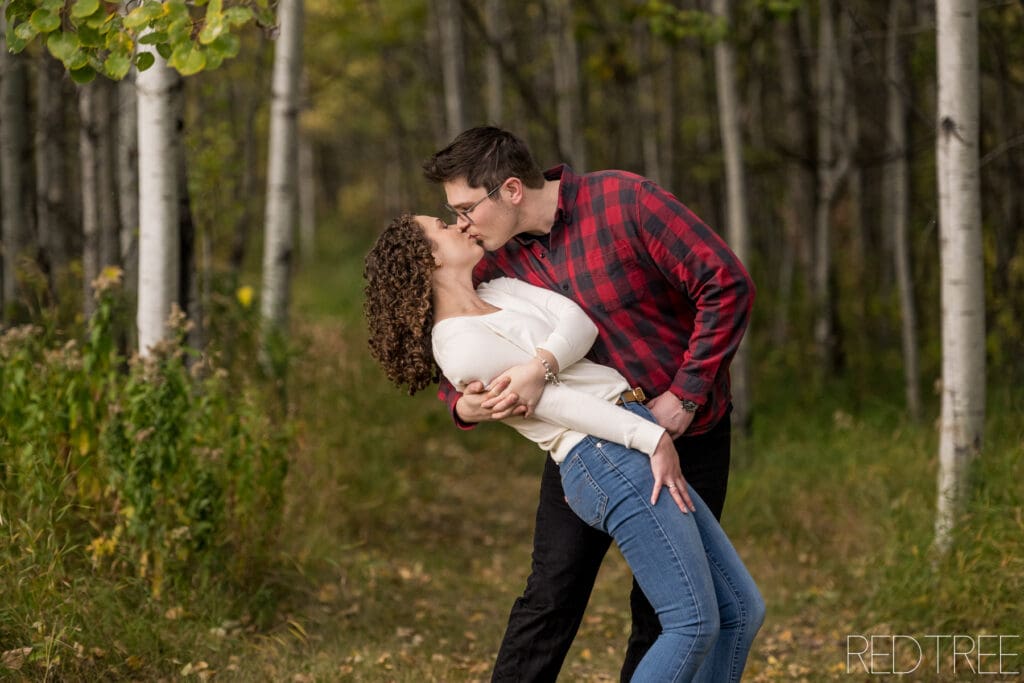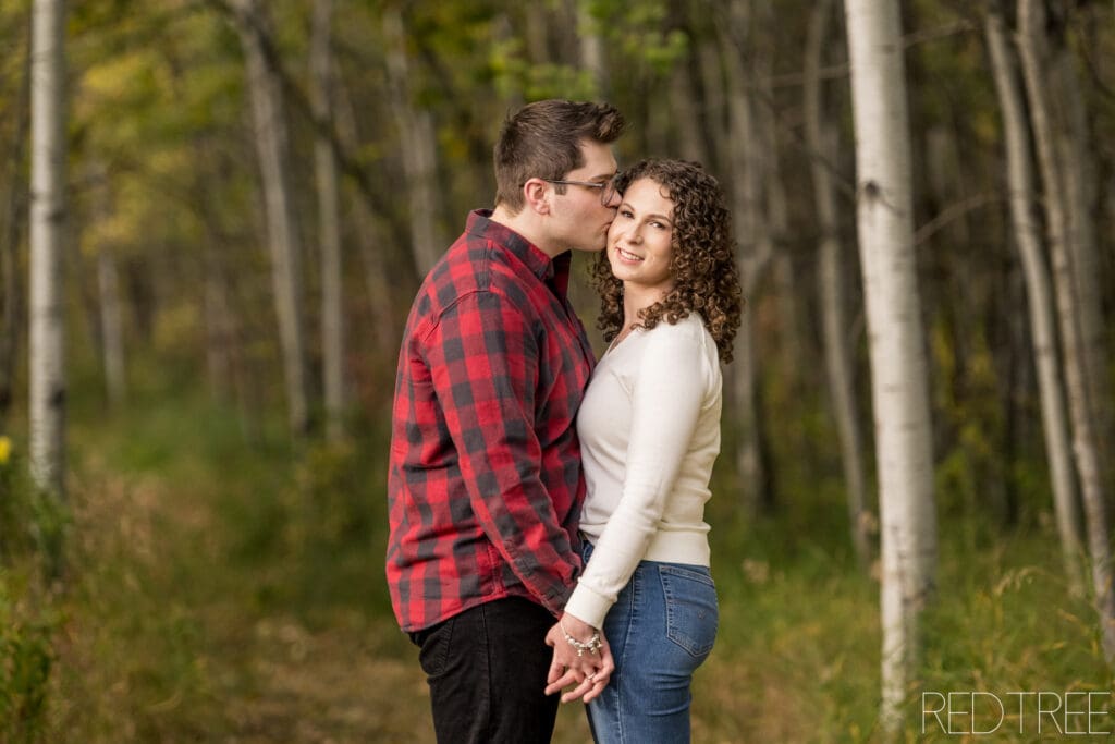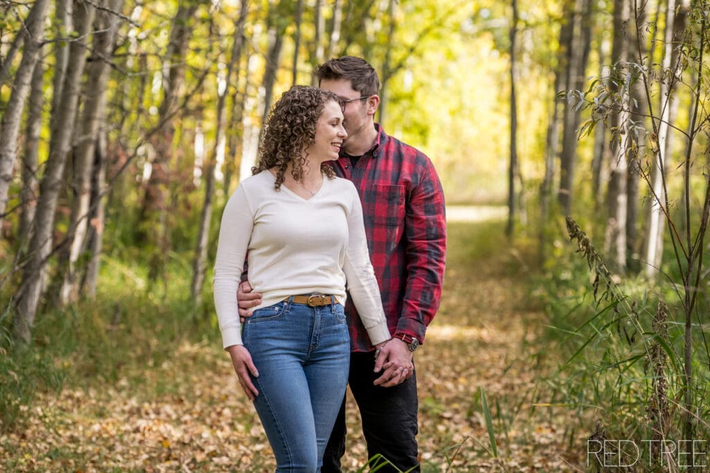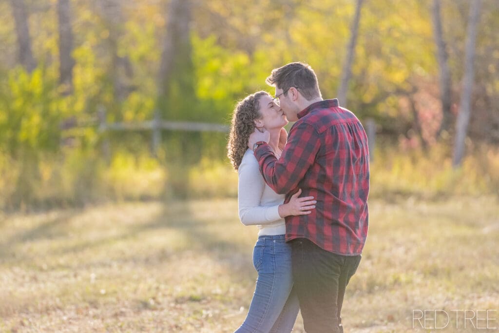 There’s something so special about photographing engagement sessions at our acreage just outside of Edmonton. Last week, I had the joy of capturing Mckenna and Jon’s engagement photos, and the evening could not have been more perfect. The light was soft and golden, streaming through the trees and creating that dreamy glow that makes outdoor photography magical.