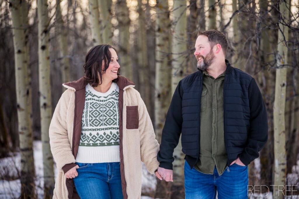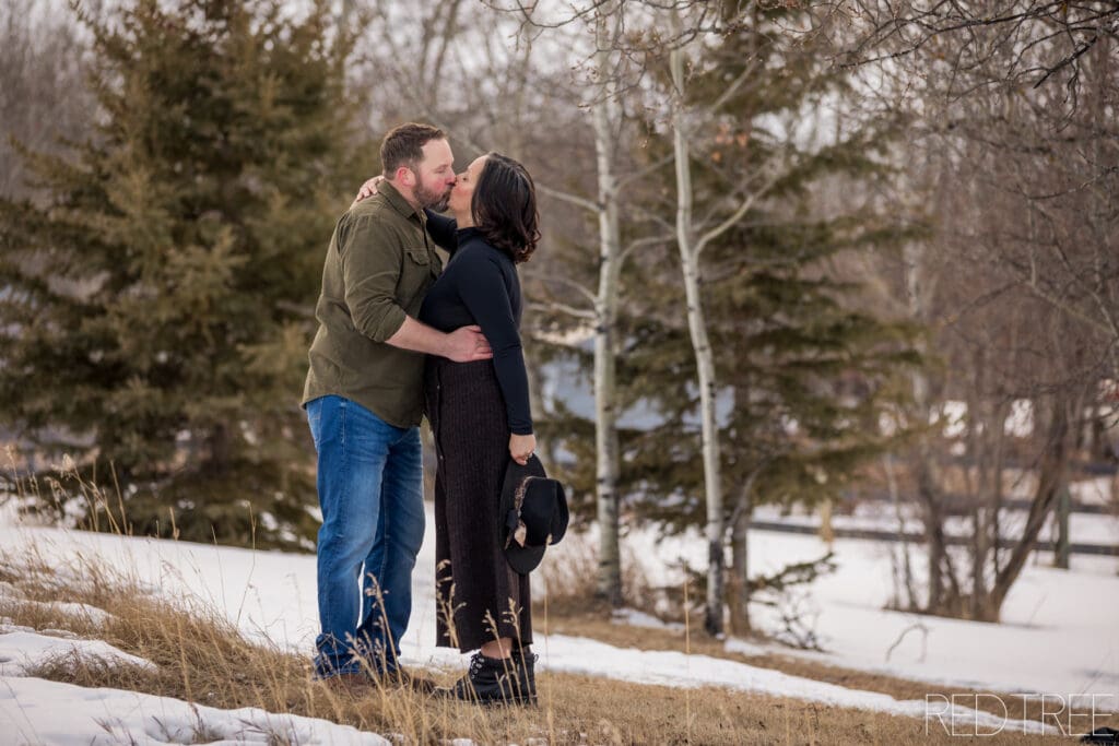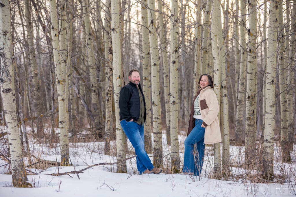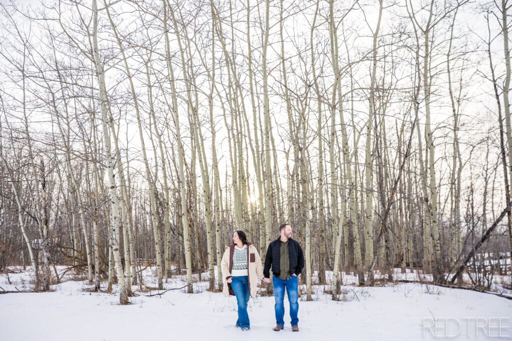 Acreage engagement sessions in Strathcona County offer such a unique feel. The privacy, the open space, and the treed areas create the perfect environment for couples to relax and just be themselves. There’s no rush, no crowds—just a calm, scenic setting that photographs so naturally.